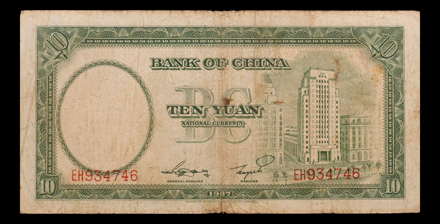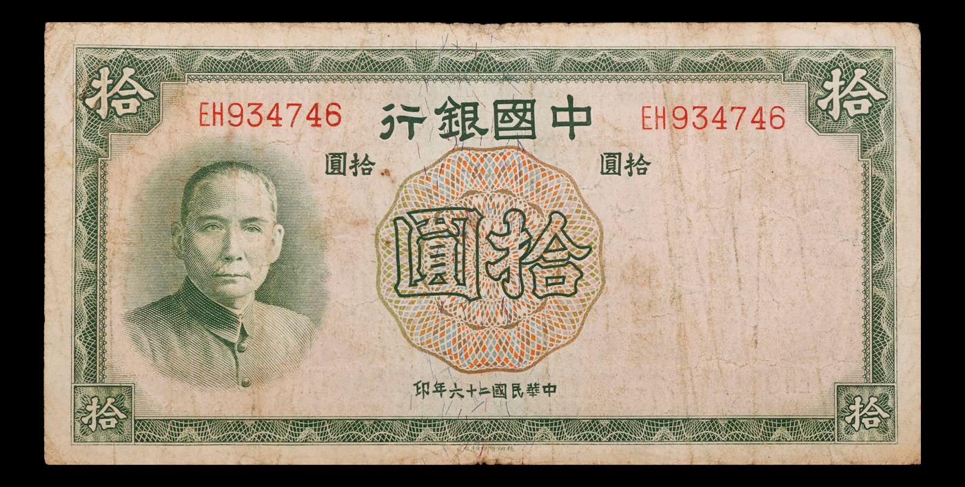 1937 China 10 Yuan Note P: 81 Grades vf, very fine.