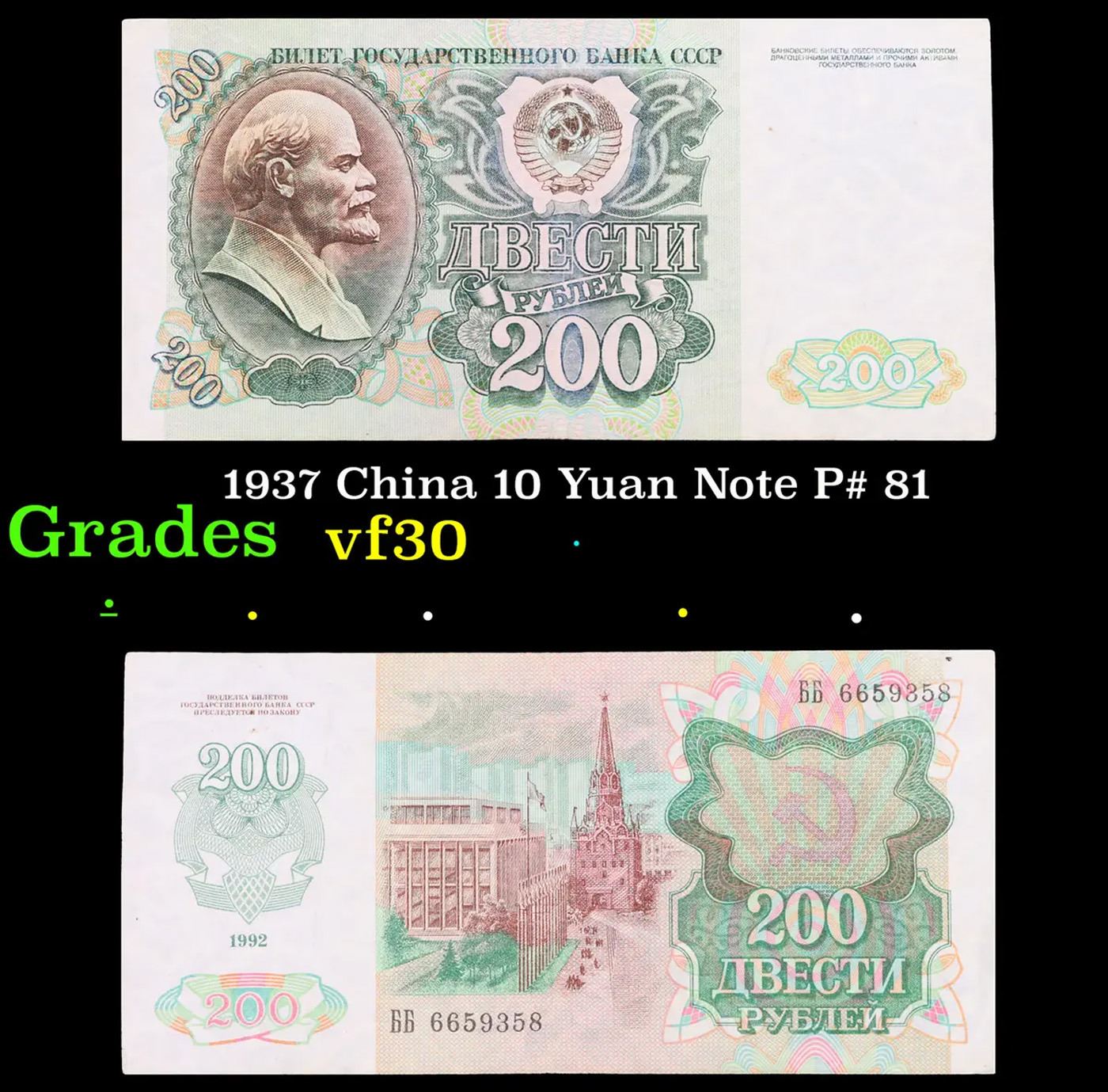 1937 China 10 Yuan Note P# 81 Grades vf++.