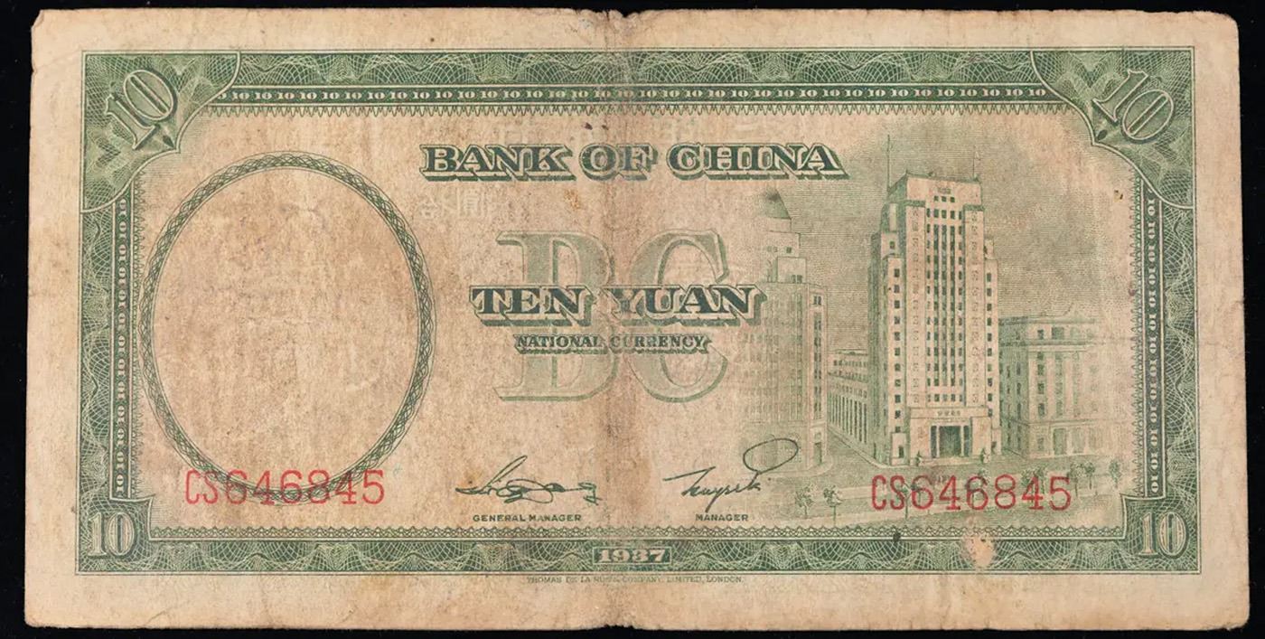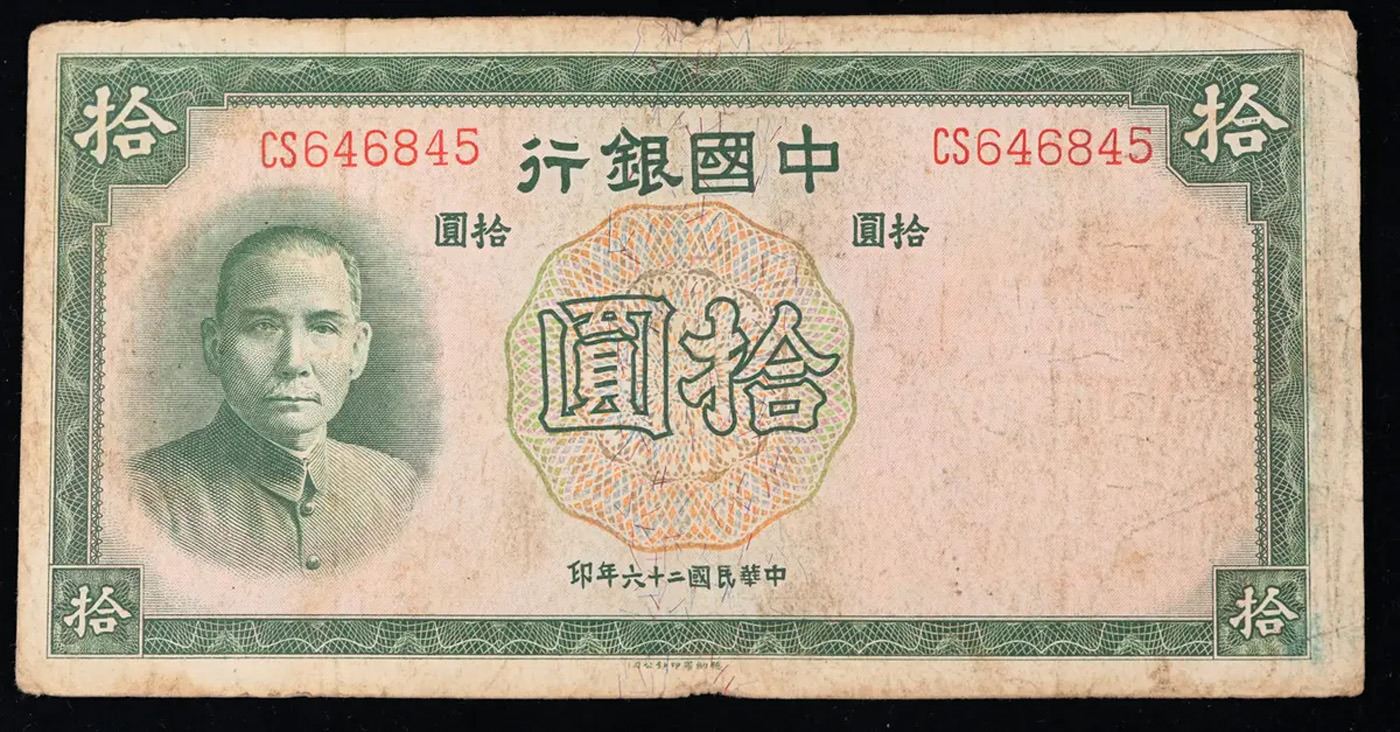 1937 China 10 Yuan Note P# 81 Grades vf+.
