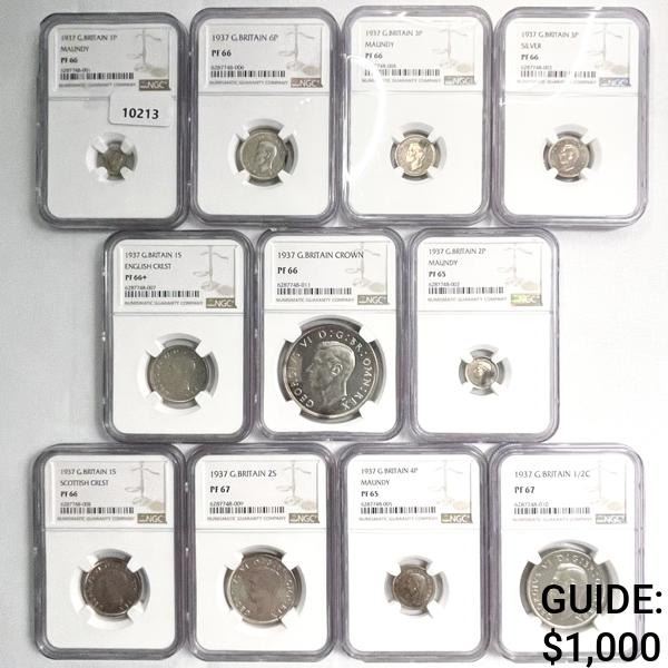 1937 Complete British Silver Proof Set NGC-PF65-67