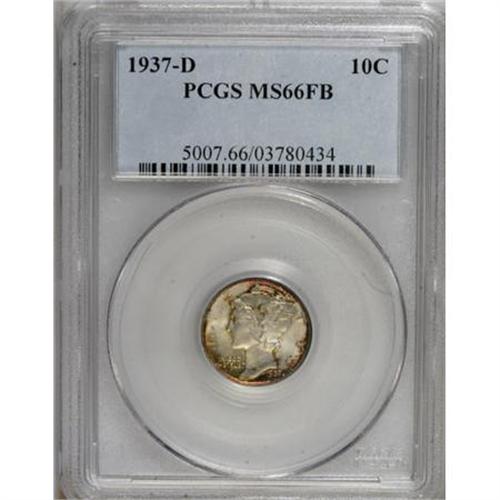 <B>1937-D 10C MS66 Full Bands PCGS.</B></I> PCGS Population (483/199). NGC Census: (257/144). Mintage: 14,146,000. Numismedia Wsl. Price for NGC/PCGS coin in MS66: $140. (#5007)<BR><BR><B>Coin Engraver:</B> Adolph A. Weinman<BR><BR><b>Shipping:</b> Coins & Currency (<a target="_blank" href="http://www.heritageauctions.com/common/shipping.php">view shipping information</a>)