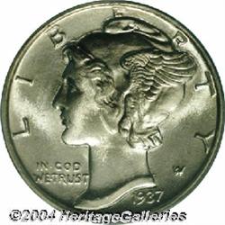 <B>1937-D<10C> MS67 Full Bands PCGS.</B></I> This coin displays a pleasing, satiny sheen with bold cartwheel effects. Both sides are free of toning as well as distractions, and the needle sharp strike is particularly noteworthy for a branch mint issue. Certainly one of the finer '37-D dimes available to today's specialists. <BR><BR><B>Important notice:</B> Heritage usually auctions material at the rate of 200-250 lots per hour. On some occasions eBay Live bid software or the Internet may not be able to keep up with the pace of the auction. We recommend placing a realistic absentee bid now as insurance to avoid disappointment. Occasionally the auctioneer may eliminate or reject an eBay Live bid, and the auctioneer may also reopen a lot after the close of the eBay live bidding (usually because we missed an audience bid), and may reject your bid even if it shows you as the winning bidder. By bidding via eBay Live, you agree that Heritage may award the lot to another bidder at its sole discretion under the circumstances described above or any other reasonable circumstances. Since eBay bids are not shown to us until we open the lot on the floor, we treat those bids just like floor bids. In most cases the floor responds before the eBay bid is presented to us, due to Internet lag time, so for consistency we have made it a policy that floor bids are always considered first over tie eBay live bids. Also please note that all Heritage lots purchased through eBay Live carry a 20% Buyer's Premium. Please make sure you read the Terms and Conditions before you bid.