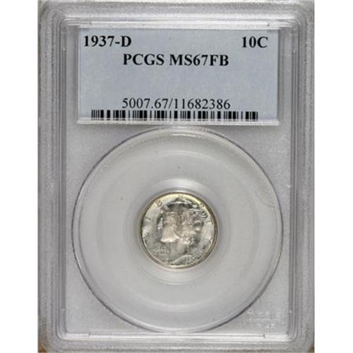 <B>1937-D 10C MS67 Full Bands PCGS.</B></I> Fully struck and immaculately preserved, this satiny dime is decorated on the obverse by dappled maroon and cyan patina. The reverse shows antique-gold and cyan coloration. Surface marks are virtually nonexistent. <BR><BR><b>Shipping:</b> Coins & Currency (<a target="_blank" href="http://www.heritageauctions.com/common/shipping.php">view shipping information</a>)