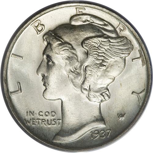 <B>1937-D 10C MS68 Full Bands PCGS.</B></I> Ex: Larry Shapiro. This immaculate Superb Gem is graced by light tan patina, aside from a glimpse of ice-blue on the obverse near 5 o'clock. A beautiful representative of this Great Depression issue. Population: 11 in 68 Full Bands, 0 finer (1/07).<BR><BR><b>Shipping:</b> Coins & Currency (<a target="_blank" href="http://www.heritageauctions.com/common/shipping.php">view shipping information</a>)