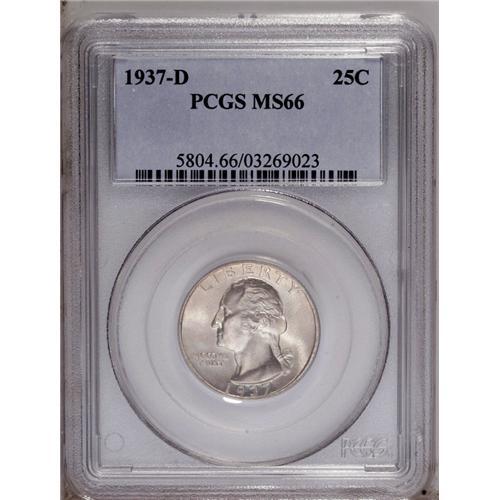 <B>1937-D<25C> MS66 PCGS.</B></I> Lightly and attractively toned with good underlying luster. On small yellow toning spot is mentioned on the eagle's left (facing) wing.