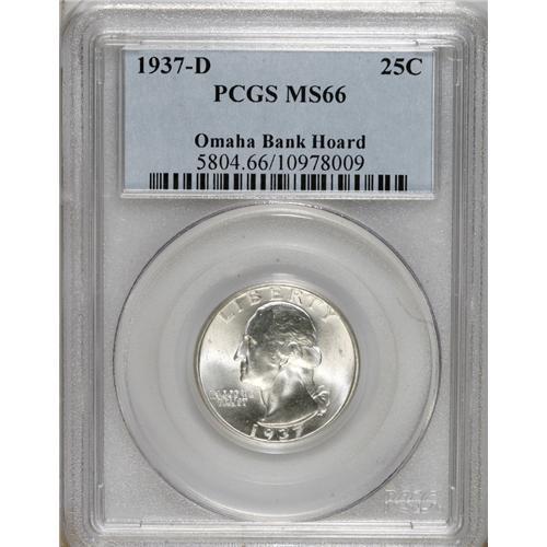 1937-D 25C MS66 PCGS. Omaha Bank Hoard. PCGS Popul