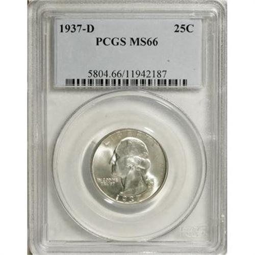 <B>1937-D 25C MS66 PCGS.</B></I> PCGS Population (252/26). NGC Census: (135/17). Mintage: 7,189,600. Numismedia Wsl. Price for NGC/PCGS coin in MS66: $330. (#5804)<BR><BR><B>Coin Engraver:</B> John Flanagan<BR><BR><b>Shipping:</b> Coins & Currency (<a target="_blank" href="http://www.heritageauctions.com/common/shipping.php">view shipping information</a>)