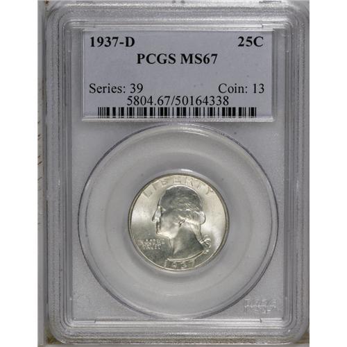1937-D 25C MS67 PCGS. Exemplary, satiny surfaces are d