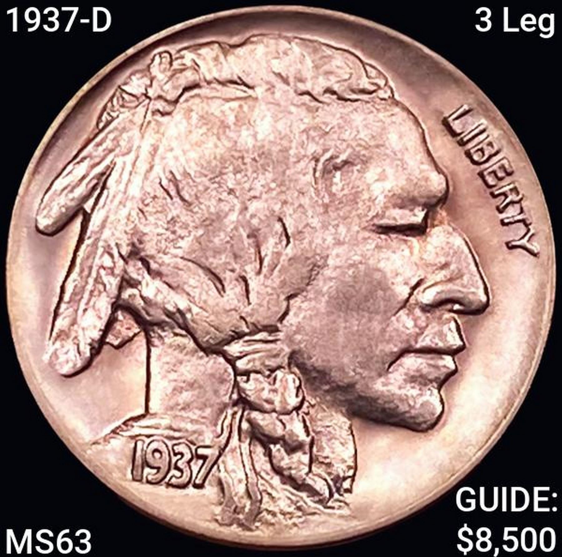 1937-D 3 Leg Buffalo Nickel CHOICE BU