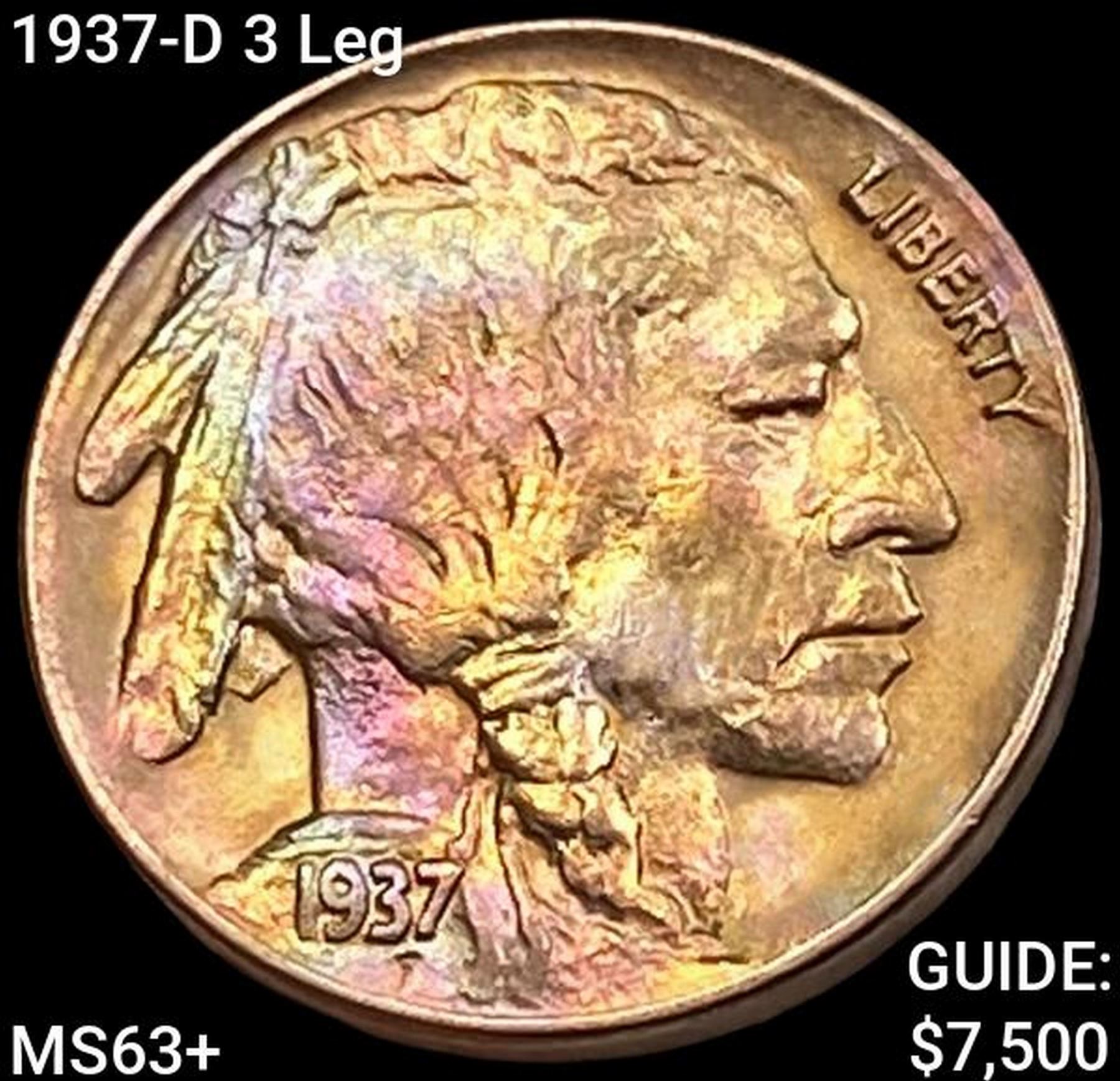 1937-D 3 Leg Buffalo Nickel CHOICE BU+