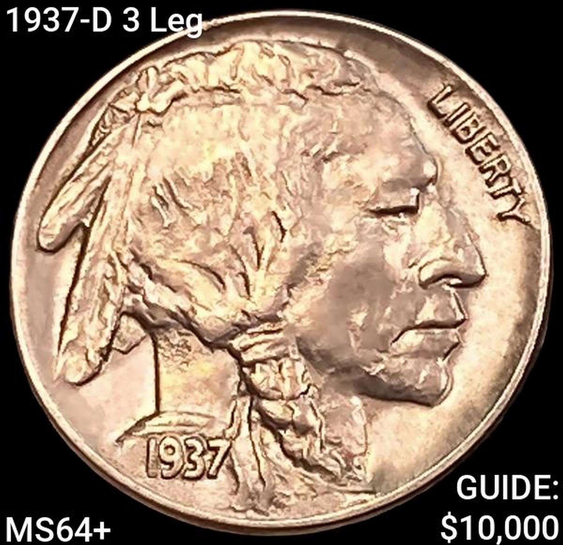 1937-D 3 Leg Buffalo Nickel CHOICE BU+