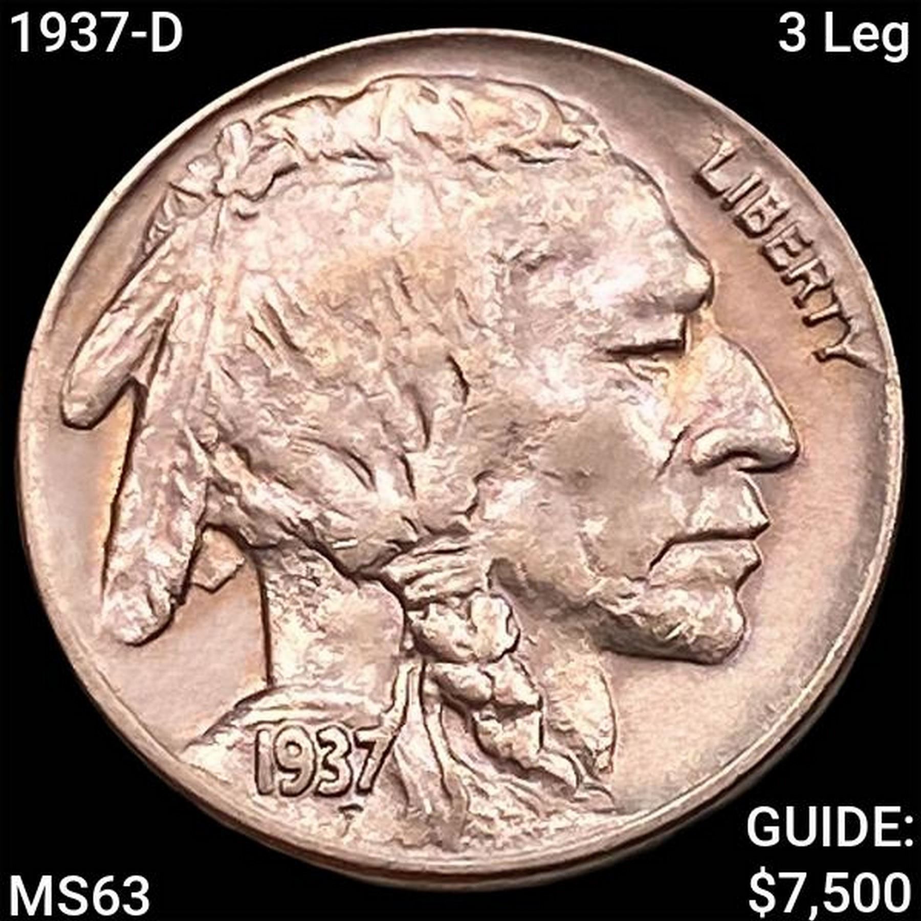 1937-D 3 Leg Buffalo Nickel CHOICE BU