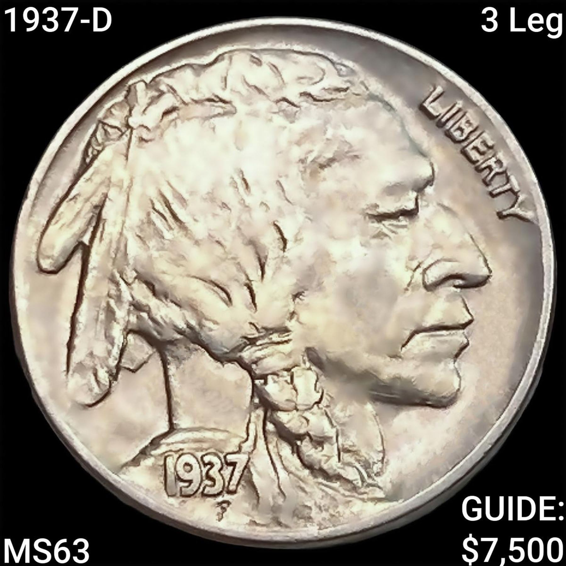 1937-D 3 Leg Buffalo Nickel CHOICE BU