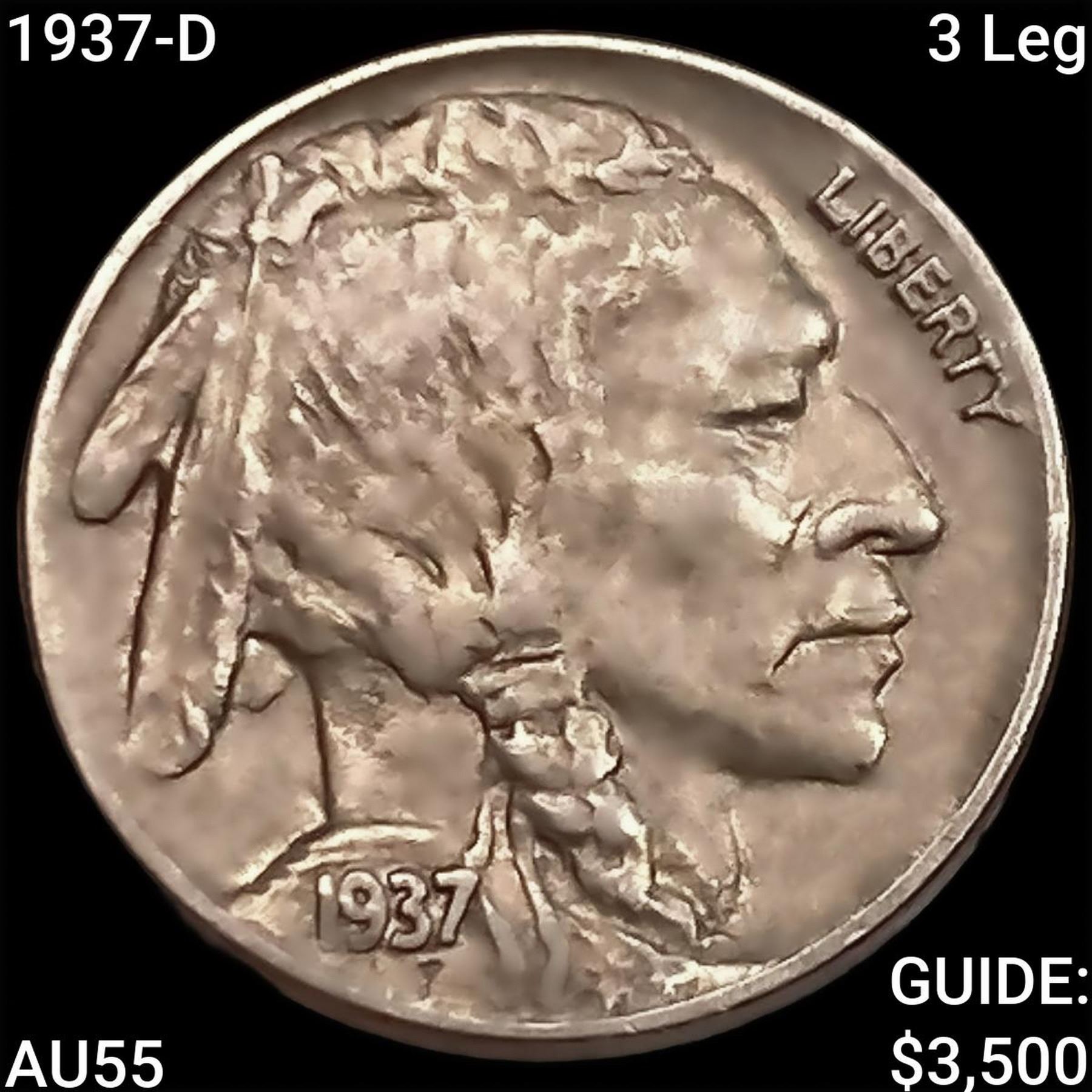 1937-D 3 Leg Buffalo Nickel HIGH GRADE