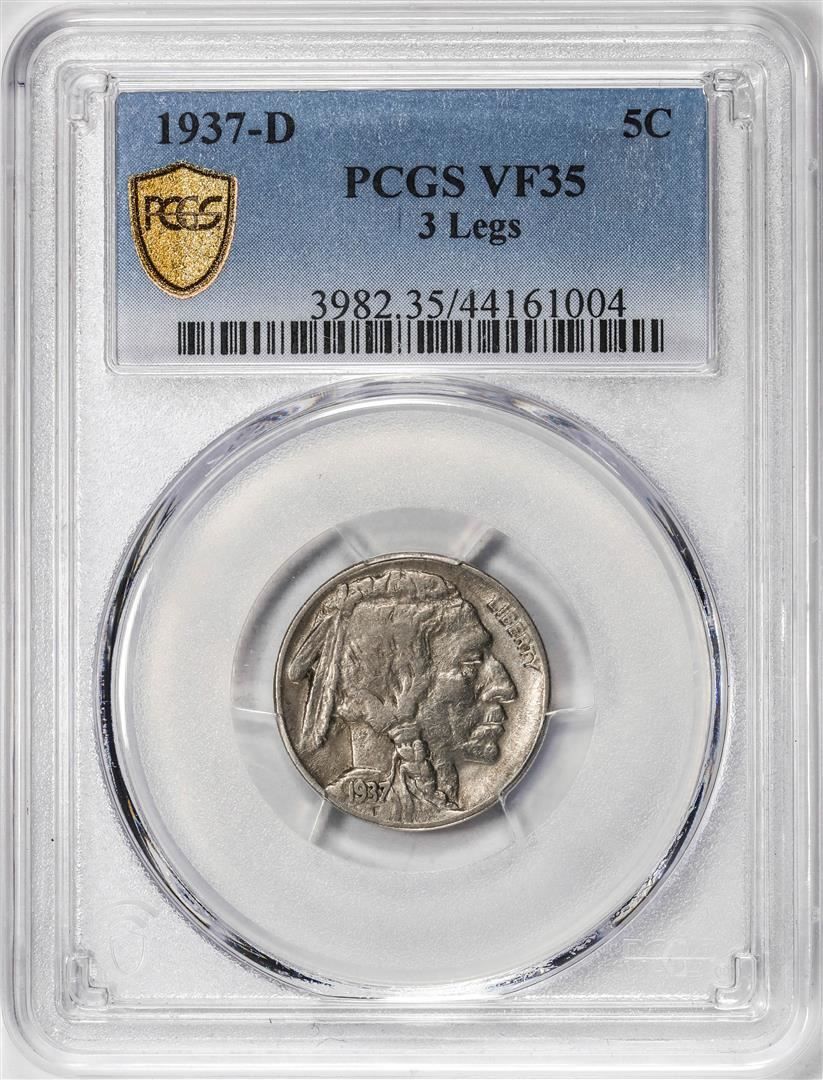 One 1937-D 3 Legged Buffalo Nickel Coin PCGS VF35. PCGS Graded.