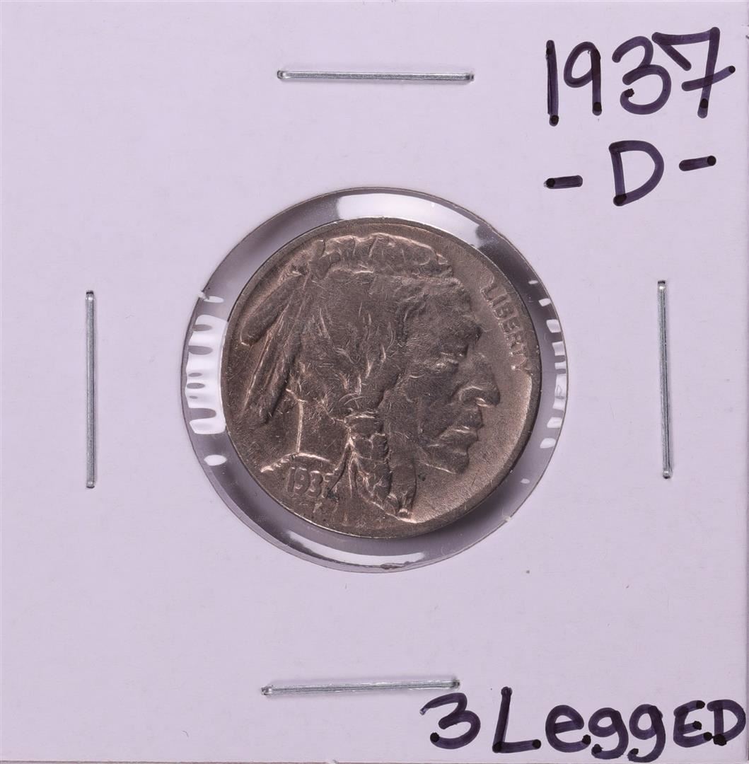 One 1937-D 3 Legged Buffalo Nickel Coin.