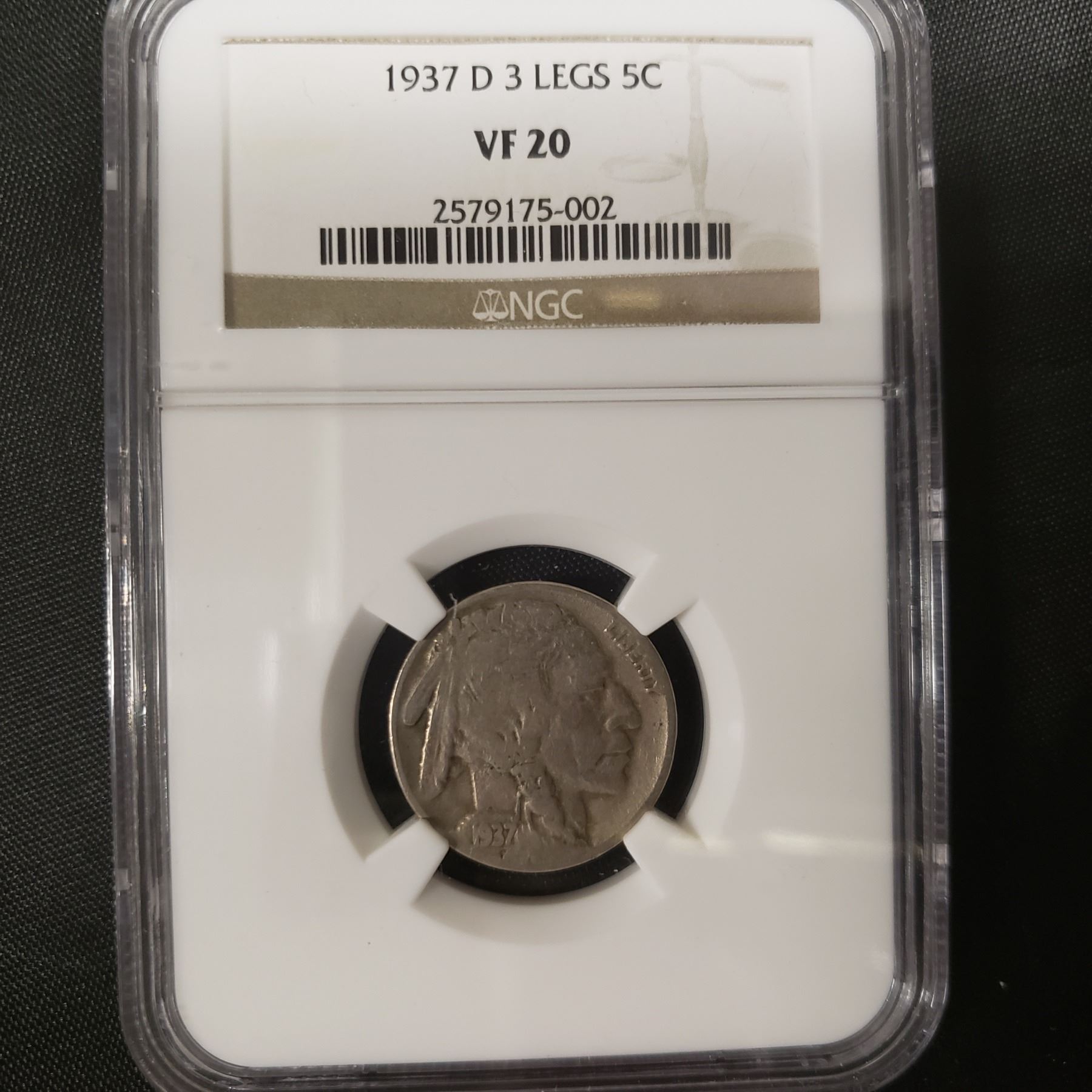 1937 D 3 Legged Buffalo Nickel Grade: VF 20+
