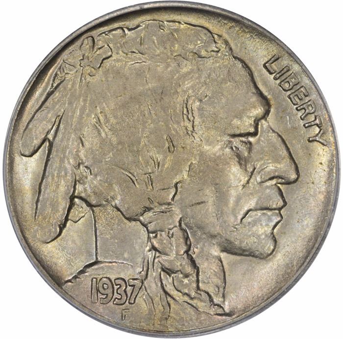 This satiny and lustrous example of one of America’s most famous Mint products is lively steel gray with a soft golden afterglow. Nicely struck for the date with more pelt at the bison’s shoulder than is typically seen. This specimen is choice among its peers in our eyes, and we feel a short examination will convince our bidders as well.