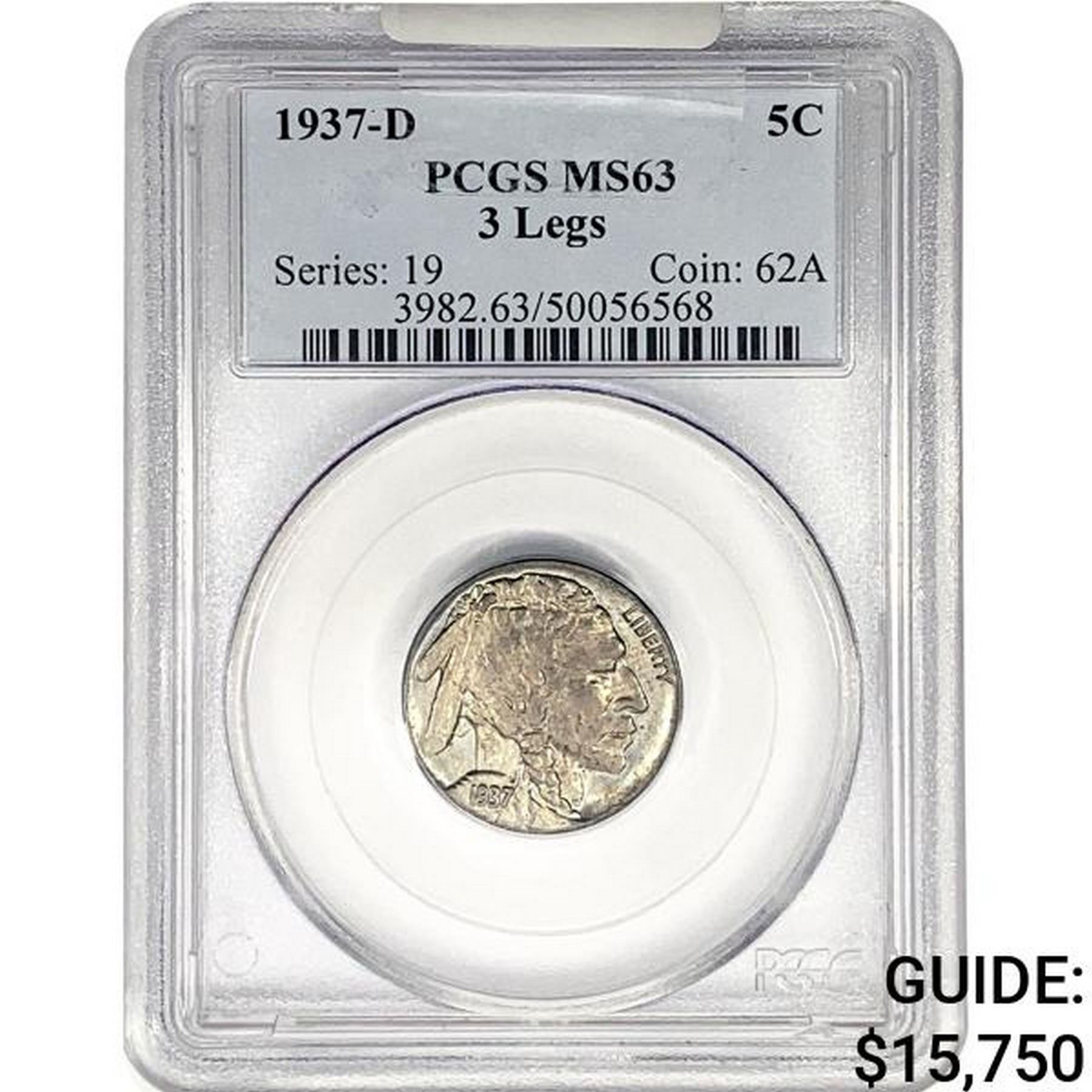 1937-D 3 Legs Buffalo Nickel PCGS MS63
