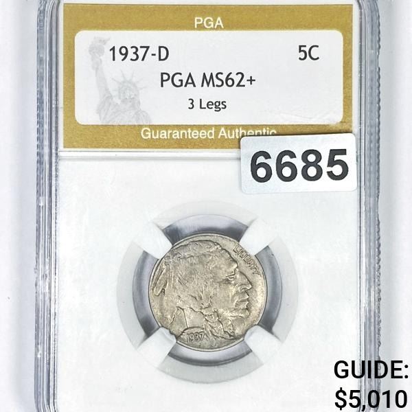 1937-D 3 Legs Buffalo Nickel PGA - MS62+