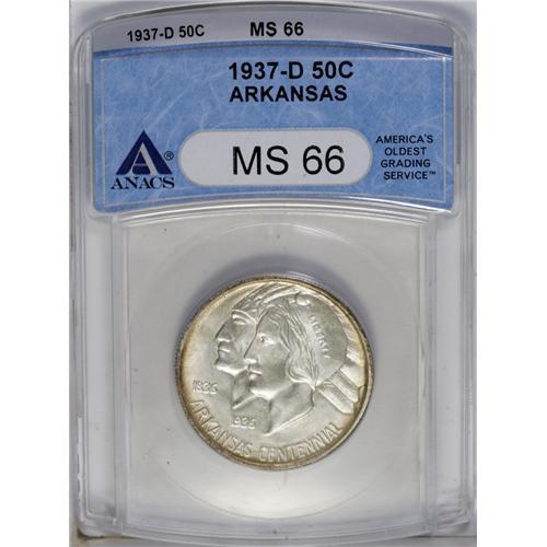 <B>1937-D<50C> Arkansas MS66 ANACS.</B></I> Reddish-tan toning at the rim surrounds a slightly milky center. The prime focal areas are nearly free of marks, and the strike is mostly full, albeit slightly soft on Liberty's hair.<BR><I>Ex: Arthur A. Grasso Collection (Stack's 11/50), lot 41.</B></I><BR><I>From The Redfjord Collection.</B></I>