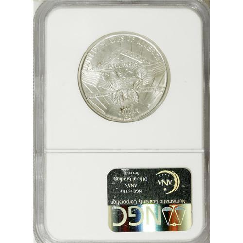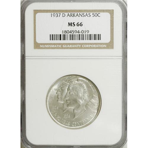 1937-D 50C Arkansas MS66 NGC. Silver-gray surfaces emi