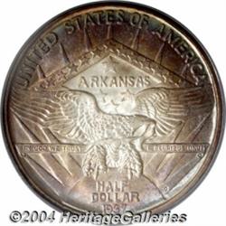<table><tr><td><table><tr><td>1937-D 50C Arkansas MS67 PCGS. Colorful golden-brown toning deepens to steel-blue at the border areas. A satiny, unmarked Superb Gem example. From the Pleasant Valley Collection. <BR><BR><B>Important notice:</B> Heritage usually auctions material at the rate of 200-250 lots per hour. On some occasions eBay Live bid software or the Internet may not be able to keep up with the pace of the auction. We recommend placing a realistic absentee bid now as insurance to avoid disappointment. Occasionally the auctioneer may eliminate or reject an eBay Live bid, and the auctioneer may also reopen a lot after the close of the eBay live bidding (usually because we missed an audience bid), and may reject your bid even if it shows you as the winning bidder. By bidding via eBay Live, you agree that Heritage may award the lot to another bidder at its sole discretion under the circumstances described above or any other reasonable circumstances. Since eBay bids are not shown to us until we open the lot on the floor, we treat those bids just like floor bids. In most cases the floor responds before the eBay bid is presented to us, due to Internet lag time, so for consistency we have made it a policy that floor bids are always considered first over tie eBay live bids. Also please note that all Heritage lots purchased through eBay Live carry a 20% Buyer's Premium. Please make sure you read the Terms and Conditions before you bid. <BR><BR><B>IMPORTANT ANNOUNCEMENT ABOUT RESERVES:</B> Heritage now divulges all reserves on its web site 7 days before every auction. If you want to know whether the reserve on this lot has been met, and if not, what the reserve amount is, please visit this lot page on the HeritageCoin.com web site, or email: bid@HeritageGalleries.com </span></font></td></tr></table></td></tr></table>
