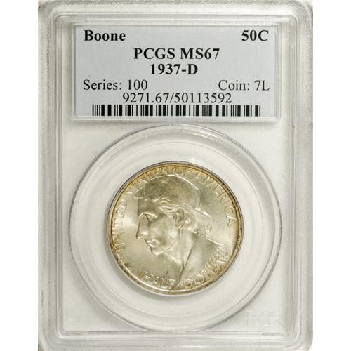 <B>1937-D 50C Boone MS67 PCGS.</B></I> A surprising Superb Gem example of this desirable low-mintage issue. The strike is above-average, and each side has soft golden-orange patina.<BR><BR><b>Shipping:</b> Coins & Currency (<a target="_blank" href="http://www.heritageauctions.com/common/shipping.php">view shipping information</a>)