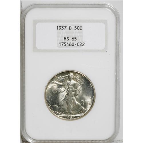 <B>1937-D<50C> MS65 NGC.</B></I> A gleaming faintly toned Gem, with abundant frosty mint luster and just a couple of wispy contact marks on Liberty's lower leg. Sharply struck and highly attractive.