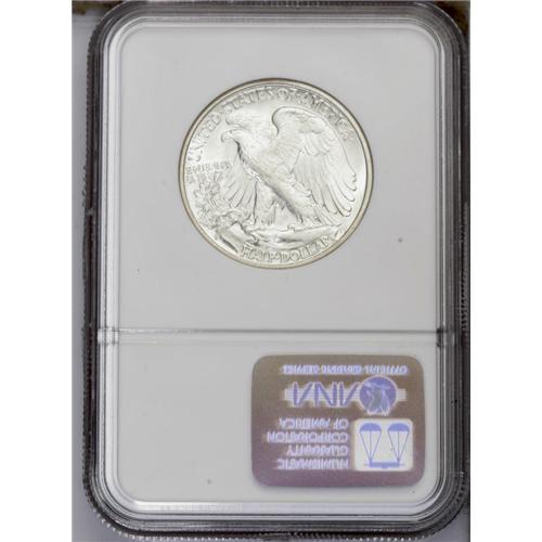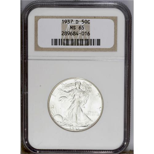 <B>1937-D<50C> MS65 NGC.</B></I> An essentially brilliant piece with pleasing sharpness despite the usual slight incompleteness on the branch hand. A few wispy obverse marks are of little import. <BR><BR><B>Important notice:</B> Heritage usually auctions material at the rate of 200-250 lots per hour. On some occasions eBay Live bid software or the Internet may not be able to keep up with the pace of the auction. We recommend placing a realistic absentee bid now as insurance to avoid disappointment. Occasionally the auctioneer may eliminate or reject an eBay Live bid, and the auctioneer may also reopen a lot after the close of the eBay live bidding (usually because we missed an audience bid), and may reject your bid even if it shows you as the winning bidder. By bidding via eBay Live, you agree that Heritage may award the lot to another bidder at its sole discretion under the circumstances described above or any other reasonable circumstances. Since eBay bids are not shown to us until we open the lot on the floor, we treat those bids just like floor bids. In most cases the floor responds before the eBay bid is presented to us, due to Internet lag time, so for consistency we have made it a policy that floor bids are always considered first over tie eBay live bids. Also please note that all Heritage lots purchased through eBay Live carry a 20% Buyer's Premium. Please make sure you read the Terms and Conditions before you bid. This lot is being auctioned in conjunction with a live floor auction by Heritage Galleries & Auctioneers. All final auction and invoice information will be supplied by Heritage Galleries & Auctioneers, and all other information should be considered preliminary. Lot:2961 <BR><BR><B>Winning Notification and Billing:</B> After the FINAL session in this auction is complete, Heritage will send e-mail and snail mail invoices. This process normally takes several days. All final auction and invoice information will be supplied by Heritage Galleries & Auctioneers, and all other information should be considered preliminary. <BR><BR>This auction will be conducted on a live auction floor and over the Internet through eBay Live. If you choose to place an absentee bid, please take a moment to <font color='#0000ff'><u><a href='http://pages.ebay.com/liveauctions/help/before/laabsentee.html'>learn how eBay Live absentee bidding works</a></u></font><font color='#000000'>