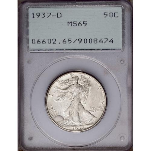 1937-D 50C MS65 PCGS. Milky-gray, lustrous surfaces di 1937-D[50C] MS65 PCGS.