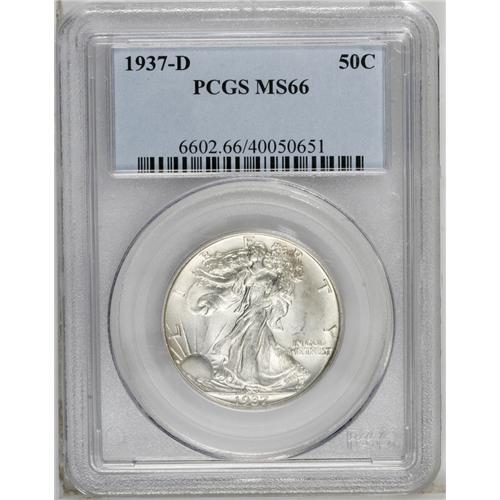 <B>1937-D 50C MS66 PCGS.</B></I> Dappled russet and sky-blue cover the clean, lustrous surfaces. The design elements are boldly impressed, including sharp definition on Liberty's thumb.<BR><BR><b>Shipping:</b> Coin/Currency (<a target="_blank" href="http://www.heritageauctions.com/common/shipping.php">view shipping information</a>)