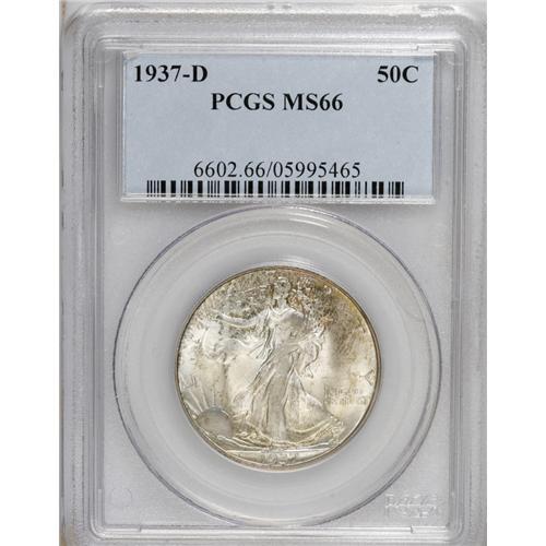 <B>1937-D 50C MS66 PCGS.</B></I> Russet and olive-green speckles run over radiantly lustrous surfaces. Sharply struck, including partial definition on the thumb. A minor graze on the right obverse field barely merits mention.<BR><BR><b>Shipping:</b> Coins & Currency (<a target="_blank" href="http://www.heritageauctions.com/common/shipping.php">view shipping information</a>)