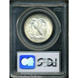 1937-D 50C MS66 PCGS. Speckles of milky-gray color <B>1937-D 50C MS66 PCGS.</B></I> Speckles of milky-gray color embrace lustrous surfaces on this well struck Walking Liberty. A few minute marks on Liberty's lower skirt are mentioned for accuracy. <BR><BR><B>Important notice:</B> Heritage usually auctions material at the rate of 200-250 lots per hour. On some occasions eBay Live bid software or the Internet may not be able to keep up with the pace of the auction. We recommend placing a realistic absentee bid now as insurance to avoid disappointment. Occasionally the auctioneer may eliminate or reject an eBay Live bid, and the auctioneer may also reopen a lot after the close of the eBay live bidding (usually because we missed an audience bid), and may reject your bid even if it shows you as the winning bidder. By bidding via eBay Live, you agree that Heritage may award the lot to another bidder at its sole discretion under the circumstances described above or any other reasonable circumstances. Since eBay bids are not shown to us until we open the lot on the floor, we treat those bids just like floor bids. In most cases the floor responds before the eBay bid is presented to us, due to Internet lag time, so for consistency we have made it a policy that floor bids are always considered first over tie eBay live bids. Also please note that all Heritage lots purchased through eBay Live carry a 20% Buyer's Premium. Please make sure you read the Terms and Conditions before you bid. This lot is being auctioned in conjunction with a live floor auction by Heritage Galleries & Auctioneers. All final auction and invoice information will be supplied by Heritage Galleries & Auctioneers, and all other information should be considered preliminary. Lot:6189