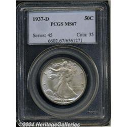 <B>1937-D<50C> MS67 PCGS.</B></I> Superb quality and highly lustrous with a lovely overlay of lavender, gray, and pink toning. The strike is somewhat waning on the highpoints. Population: 33 in 67, 0 finer (3/04).<BR><I>From The Del Rio Collection, Part One.</B></I> <BR><BR><B>Important notice:</B> Heritage usually auctions material at the rate of 200-250 lots per hour. On some occasions eBay Live bid software or the Internet may not be able to keep up with the pace of the auction. We recommend placing a realistic absentee bid now as insurance to avoid disappointment. Occasionally the auctioneer may eliminate or reject an eBay Live bid, and the auctioneer may also reopen a lot after the close of the eBay live bidding (usually because we missed an audience bid), and may reject your bid even if it shows you as the winning bidder. By bidding via eBay Live, you agree that Heritage may award the lot to another bidder at its sole discretion under the circumstances described above or any other reasonable circumstances. Since eBay bids are not shown to us until we open the lot on the floor, we treat those bids just like floor bids. In most cases the floor responds before the eBay bid is presented to us, due to Internet lag time, so for consistency we have made it a policy that floor bids are always considered first over tie eBay live bids. Also please note that all Heritage lots purchased through eBay Live carry a 20% Buyer's Premium. Please make sure you read the Terms and Conditions before you bid. </span></font></tr></table></td></tr></table>