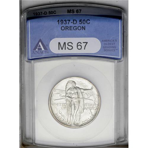 1937-D 50C Oregon MS67 ANACS. Impeccable silver-gray s 1937-D[50C] Oregon MS67 ANACS.