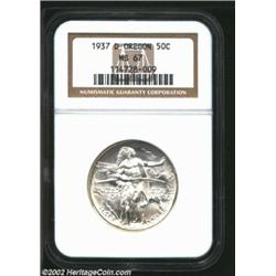 1937-D 50C Oregon MS67 NGC. Dazzling mint brilliance with bright mint frost over each side. Virtuall