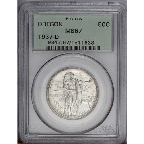 1937-D 50C Oregon MS67 PCGS. A magnificent Superb Gem, 1937-D[50C] Oregon MS67 PCGS.