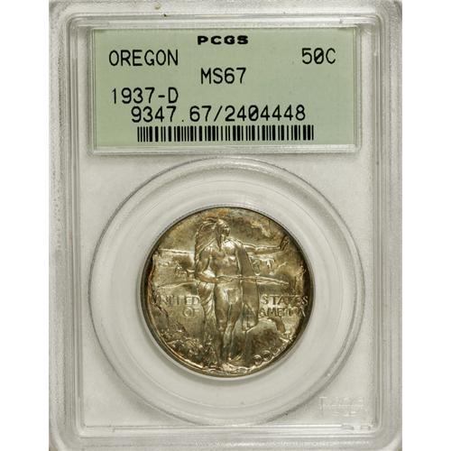 1937-D 50C Oregon MS67 PCGS. A pretty piece, softly lu
