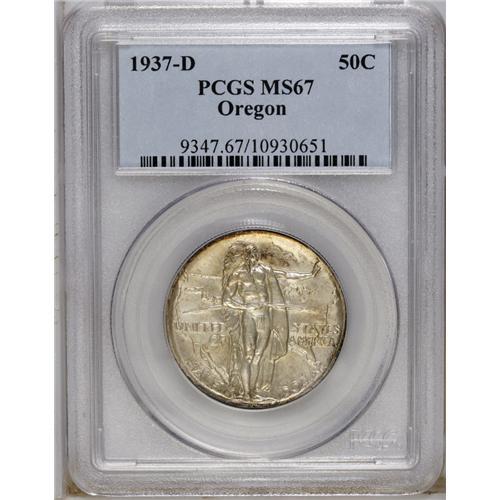 1937-D 50C Oregon MS67 PCGS. A solidly struck and lust