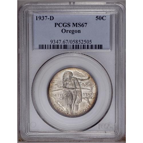 1937-D 50C Oregon MS67 PCGS. Slate-gray centers are fr 1937-D[50C] Oregon MS67 PCGS.