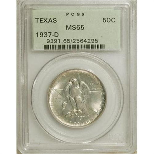 <B>1937-D 50C Texas MS65 PCGS.</B></I> PCGS Population (668/540). NGC Census: (409/479). Mintage: 6,605. Numismedia Wsl. Price for NGC/PCGS coin in MS65: $292. (#9391)<BR><BR><b>Shipping:</b> Coins & Currency (<a target="_blank" href="http://www.heritageauctions.com/common/shipping.php">view shipping information</a>)