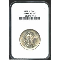 1937-D 50C Texas MS67 NGC. Speckled green-gray patina visits the peripheries of this lustrous and we