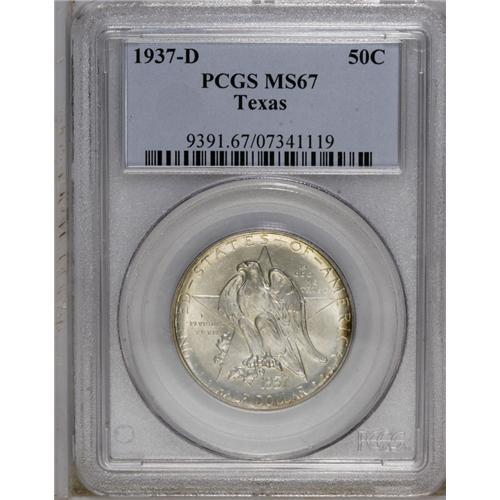 1937-D 50C Texas MS67 PCGS. A sharply struck and highl
