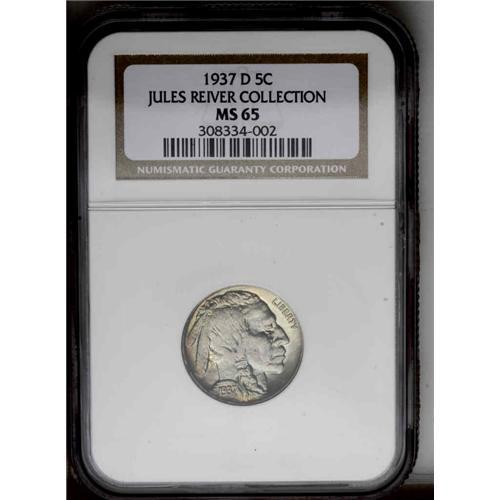 1937-D 5C MS65 NGC. Lovely steel-green and gold-orange 1937-D[5C] MS65 NGC.