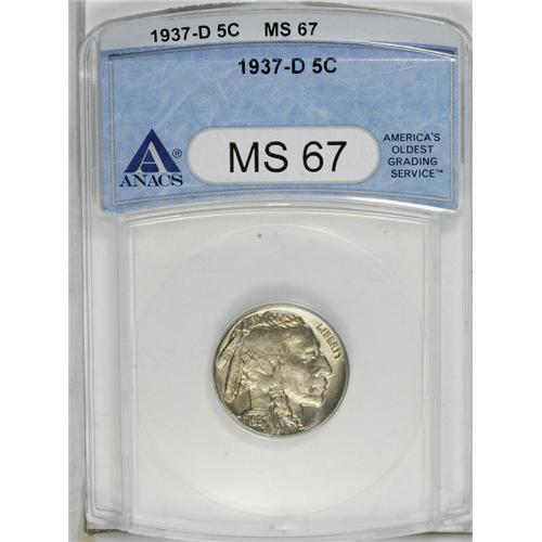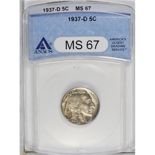 1937-D 5C MS67 ANACS. Boldly struck and highly lustrou