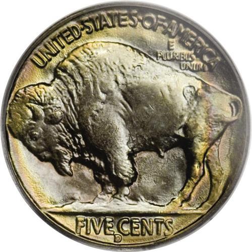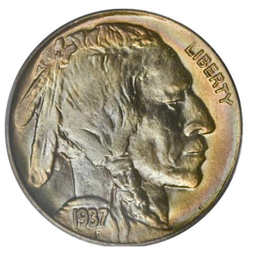 1937-D 5C MS67 PCGS. Beautiful pastel multicolored ton