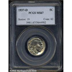 <TABLE cellSpacing=0 cellPadding=0 width="100%" bgColor=#000000 border=0><TBODY><TR><TD width="100%"><TABLE cellSpacing=1 cellPadding=3 width="100%" border=0><TBODY><TR><TD width="100%" bgColor=#79735c><FONT face=arial color=#ffffff size=3><B>Description</B> </FONT></TD></TR><TR><TD width="100%" bgColor=#ffffff><FONT face=arial size=2><B>1937-D 5C MS67 PCGS.</B></I> Slightly grainy, golden tinted surfaces with bold definition. Only one piece has been certified finer by NGC and PCGS combined (8/03). </FONT></TD></TR></TBODY></TABLE></TD></TR></TBODY></TABLE><BR><A name=PricesRealized></A><TABLE cellSpacing=0 cellPadding=0 width="100%" bgColor=#000000 border=0><TBODY><TR><TD width="100%"><TABLE cellSpacing=1 cellPadding=3 width="100%" border=0><TBODY><TR><TD width="100%" bgColor=#79735c><A name=PR><FONT face=arial color=#ffffff size=3><B>Previous Prices from Heritage Auctions</B> </FONT></A></TD></TR><TR><TD bgColor=#f6f6ed><TABLE cellSpacing=0 cellPadding=0 width="100%" border=1><TBODY><TR><TD align=middle width="33%"><B>Date</B></TD><TD align=middle width="33%"><B>Service</B></TD><TD align=middle width="33%"><B>Price</B></TD></TR><TR bgColor=whitesmoke><TD width="33%"><B>06/10/2000</B></TD><TD width="33%">PCGS</TD><TD width="33%">$833.75</TD></TR><TR bgColor=whitesmoke><TD width="33%"><B>06/01/2000</B></TD><TD width="33%">PCGS</TD><TD width="33%">$1,150.00</TD></TR><TR bgColor=whitesmoke><TD width="33%"><B>03/01/2003</B></TD><TD width="33%">PCGS</TD><TD width="33%">$2,875.00</TD></TR><TR bgColor=whitesmoke><TD width="33%"><B>07/29/2003</B></TD><TD width="33%">PCGS</TD><TD width="33%">$1,380.00</TD></TR><TR bgColor=whitesmoke><TD width="33%"><B>07/29/2003</B></TD><TD width="33%">PCGS</TD><TD width="33%">$1,150.00</TD></TR><TR bgColor=whitesmoke><TD width="33%"><B>07/29/2003</B></TD><TD width="33%">PCGS</TD><TD width="33%">$1,035.00</TD></TR><TR bgColor=whitesmoke><TD width="33%"><B>07/29/2003</B></TD><TD width="33%">PCGS</TD><TD width="33%">$1,207.50</TD></TR><TR bgColor=whitesmoke><TD width="33%"><B>07/29/2003</B></TD><TD width="33%">PCGS</TD><TD width="33%">$977.50</TD></TR><TR bgColor=whitesmoke><TD width="33%"><B>03/23/2003</B></TD><TD width="33%">PCGS</TD><TD width="33%">$1,150.00</TD></TR><TR bgColor=whitesmoke><TD width="33%"><B>05/03/2003</B></TD><TD width="33%">PCGS</TD><TD width="33%">$1,092.50</TD></TR><TR bgColor=whitesmoke><TD width="33%"><B>05/03/2003</B></TD><TD width="33%">PCGS</TD><TD width="33%">$1,265.00</TD></TR><TR bgColor=whitesmoke><TD width="33%"><B>06/17/2003</B></TD><TD width="33%">PCGS</TD><TD width="33%">$1,099.40</TD></TR><TR bgColor=whitesmoke><TD width="33%"><B>08/14/2001</B></TD><TD width="33%">NGC</TD><TD width="33%">$480.00</TD></TR><TR bgColor=whitesmoke><TD width="33%"><B>01/02/2001</B></TD><TD width="33%">NGC</TD><TD width="33%">$500.00</TD></TR><TR bgColor=whitesmoke><TD width="33%"><B>10/24/2000</B></TD><TD width="33%">NGC</TD><TD width="33%">$500.00</TD></TR><TR bgColor=whitesmoke><TD width="33%"><B>01/05/2001</B></TD><TD width="33%">PCGS</TD><TD width="33%">$1,006.25</TD></TR><TR bgColor=whitesmoke><TD width="33%"><B>05/05/2000</B></TD><TD width="33%">PCGS</TD><TD width="33%">$948.75</TD></TR><TR bgColor=whitesmoke><TD width="33%"><B>03/01/2003</B></TD><TD width="33%">NGC</TD><TD width="33%">$552.00</TD></TR></TBODY></TABLE></TD></TR><TR><TD bgColor=#ffffff><FONT face=arial size=1 ?>PLEASE NOTE: All prices realized reflect the final hammer price PLUS the buyer's premium in auctions that charge a buyer's premium. Each item has a notation at the top of the listing indicating whether that lot included a buyer's premium. Example: A item that sells with a final hammer price of $100 and a 20% buyer's premium will display with a price realized of $120. All information listed is intended to be as accurate as possible, but errors are possible. Please use this guide carefully and inform us of any inaccuracies. </FONT></TD></TR></TBODY></TABLE></TD></TR></TBODY></TABLE><BR><TABLE cellSpacing=0 cellPadding=0 width="100%" bgColor=#000000 border=0><TBODY><TR><TD width="100%"><TABLE cellSpacing=1 cellPadding=3 width="100%" border=0><TBODY><TR><TD width="100%" bgColor=#79735c colSpan=6><FONT face=arial color=#ffffff size=3><B>Price Guide*</B> </FONT></TD></TR><TR bgColor=#f6f6ed><TD align=middle><B>Grade</B> </TD><TD align=middle><B>Coin World<BR>(Trends)</B> </TD><TD align=middle><B>Numismedia<BR>Retail</B> </TD><TD align=middle><B>Numismedia<BR>Wholesale</B> </TD><TD align=middle><B>Coin<BR>Universe</B> </TD><TD align=middle><B>Heritage<BR>Value Index</B> </TD></TR><TR bgColor=#ffffff><TD align=middle>66</TD><TD align=right>$90.00</TD><TD align=right>$88.00</TD><TD align=right>$70.00</TD><TD align=right>$85.00</TD><TD align=right>$70.83</TD></TR><TR style="FONT-WEIGHT: bold" bgColor=#cccfdd><TD align=middle>67</TD><TD align=right>---</TD><TD align=right>---</TD><TD align=right>$925.00</TD><TD align=right>$1,600.00</TD><TD align=right>$1,038.00</TD></TR><TR bgColor=#ffffff><TD align=middle>68</TD><TD align=right>---</TD><TD align=right>---</TD><TD align=right>---</TD><TD align=right>---</TD><TD align=right>---</TD></TR><TR bgColor=#ffffff><TD colSpan=6><FONT size=1>*All information listed is intended to be as accurate as possible, but errors are possible. No item may be returned or refused based on this information which is provided as a service to our customers. You should contact each pricing source directly to determine the accuracy of this information. </FONT></TD></TR></TBODY></TABLE></TD></TR></TBODY></TABLE><BR><TABLE cellSpacing=0 cellPadding=0 width="100%" bgColor=#000000 border=0><TBODY><TR><TD width="100%"><TABLE cellSpacing=1 cellPadding=3 width="100%" border=0><TBODY><TR><TD width="100%" bgColor=#79735c><FONT face=arial color=#ffffff size=3><B>Population Guide</B> </FONT></TD></TR><TR bgColor=#ffffff><TD align=middle><!-- Begin Output of Population Grid--><TABLE cellSpacing=0 cellPadding=0 width="100%" border=0><TBODY><TR><TD vAlign=center><TABLE cel