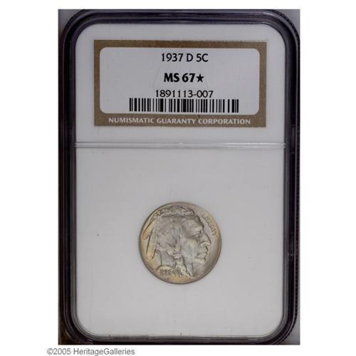 1937-D 5C MS67 S NGC. Fully lustrous surfaces are vis 1937-D[5C] MS67 [S NGC.