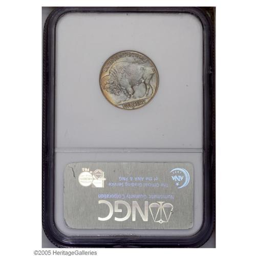 <B>1937-D<5C> MS67 <S NGC.</B></I> Fully lustrous surfaces are visited by mauve patina and splashes of gold and orange. Excellent definition is apparent on the design elements, and the surfaces are marvelously preserved. Population: 18 in 67 <S, 0 finer (10/05).